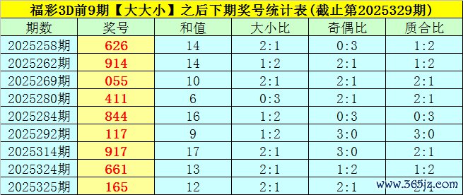 2、奖号质合比诀别开出:0:3、3:0、1:2、3:0、0:3、1:2、0:3、3:0、1:2,总质合比开出12:15,其中有3期奖号质合比和上期奖号质合比很是;